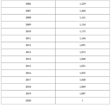 Source : Arrêté n° 779-21 du 8 chaaban 1442 (22 mars 2021) fixant les coefficients de réévaluation de l’impôt sur le revenu sur profits fonciers pour l’année 2021 : BORM n° 6973, 29 mars 2021 (consulter le BORM n° 6973 sur le site du SGG)