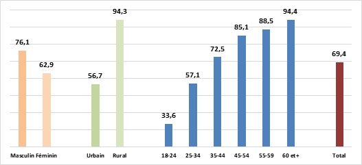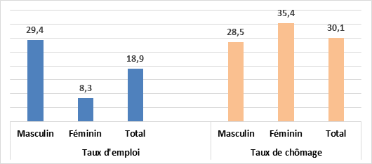 Le taux d’emploi des primo-votants, quant à lui, est de 18,9 % (29,4 % parmi les hommes contre 8,3 % parmi les femmes). Ce taux est plus élevé en milieu rural (31,7 %) qu’en milieu urbain (11,2 %).